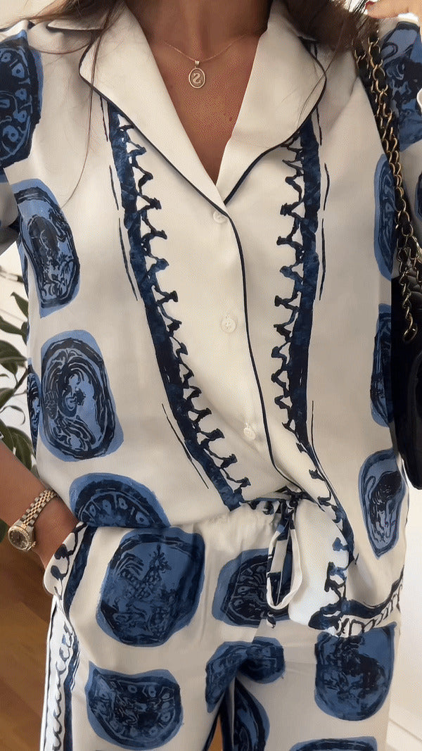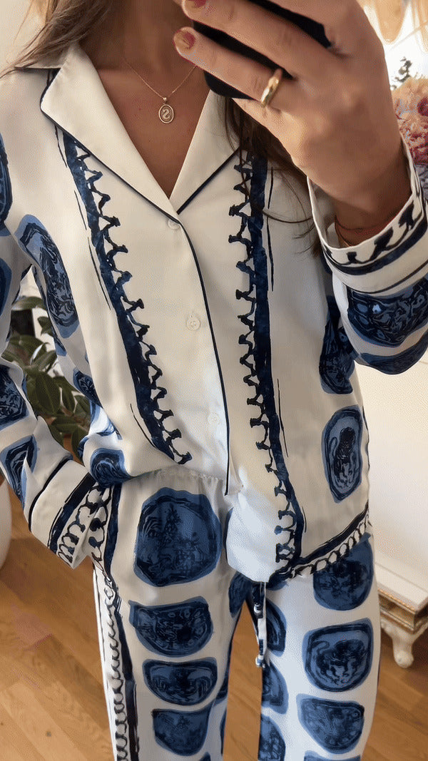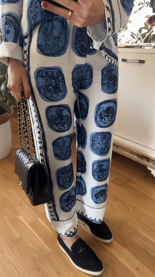 Maak kennis met de Florina DeepBlue Harmony Set – een elegante en stijlvolle set die moeiteloos comfort en klasse combineert. Met een artistieke print en premium materialen straalt deze set luxe uit en voelt hij heerlijk aan. Ideaal voor elke gelegenheid, van een casual dagje uit tot een chique bijeenkomst.