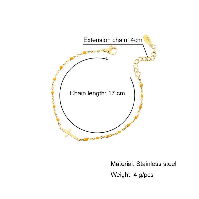 De Jytte armband is meer dan een accessoire—het is een krachtig symbool van stijl, spiritualiteit en zelfexpressie. Deze goudkleurige armband met kruisdetail brengt een vleugje boho-elegantie naar je look, terwijl het duurzame roestvrij staal zorgt voor langdurige schoonheid. Perfect als cadeau of voor jezelf, en moeiteloos te combineren met elke outfit.