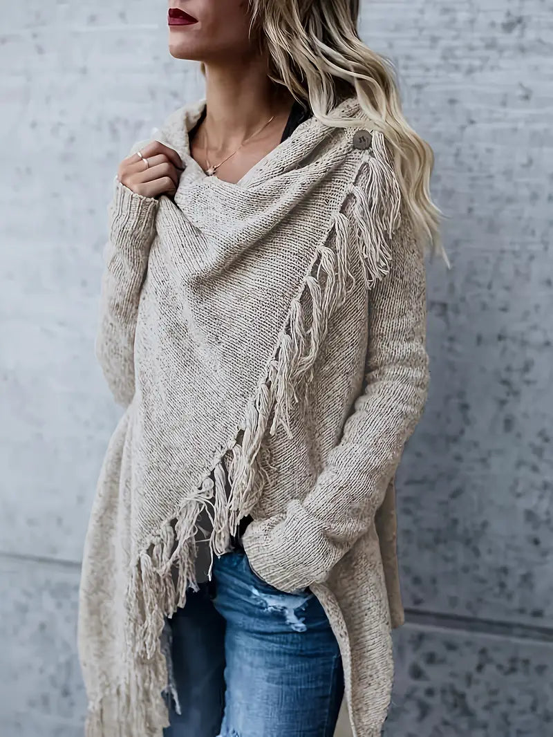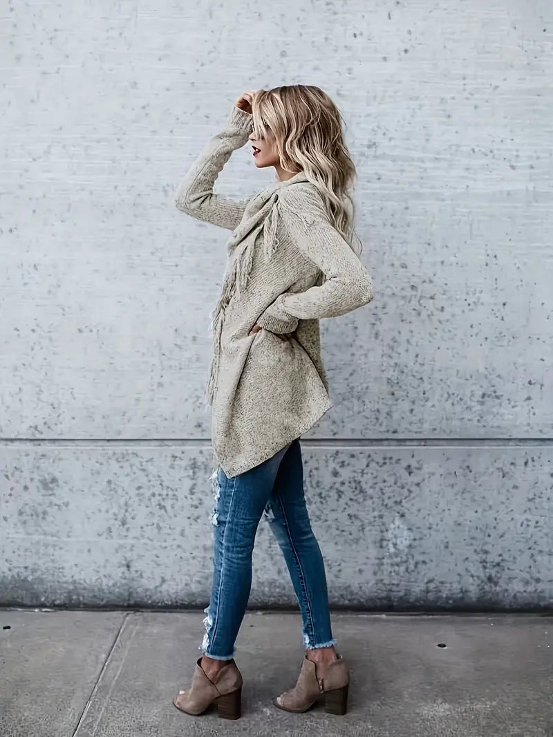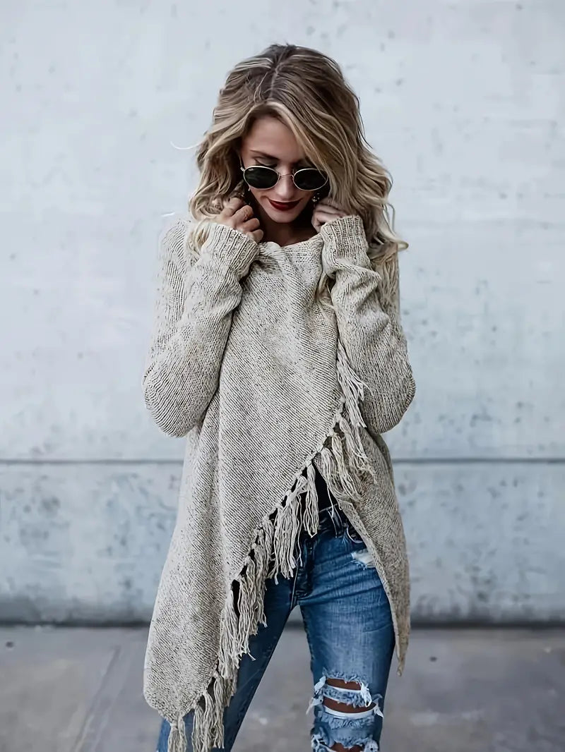 Op zoek naar een elegante trui die je warm houdt? De Noor is een tuniektrui met rolkraag en verfijnde franje aan de zoom, perfect voor frisse herfst- en winterdagen. Gemaakt van zachte gebreide stof die je behaaglijk houdt zonder in te leveren op stijl. Ideaal voor zowel casual als chique momenten, van koffiedates tot avondwandelingen.